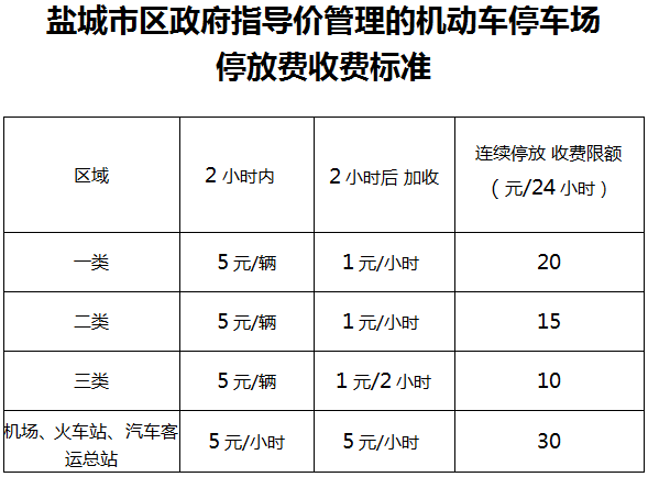 2.盐城市区政府指导价管理的机动车停车场停放费收费标准