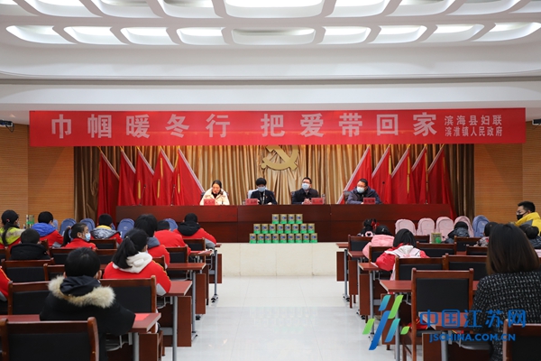 中国江苏网1月21日盐城讯 岁末情深,暖意融融。1月20日,盐城市滨海县妇联在滨淮镇政府举办“巾帼暖家行 把爱带回家”新春送温暖活动,滨海县副县长龚春红、滨海县妇联主席史冬珠、滨淮镇党委书记吕博、滨海县政府办副主任朱恒旺参加活动。