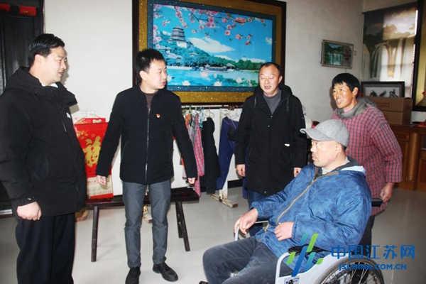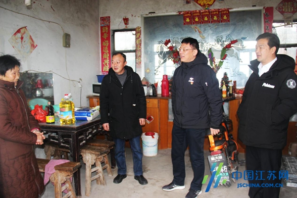 中国江苏网1月27日盐城讯 “谢谢丁书记和周总,还把我这个孤老头子放在心上!”日前,东台市南沈灶镇港桥村八组潘林家中来了一群“客人”,他们是南沈灶镇党委书记丁进东、副镇长宗雨阳、江苏徐随起重科技有限公司负责人周宏山以及镇经济发展局和港桥村的负责人。他们给老人送来了肉、米、油和调味品,并祝愿老人家保重身体,开开心心过新年。