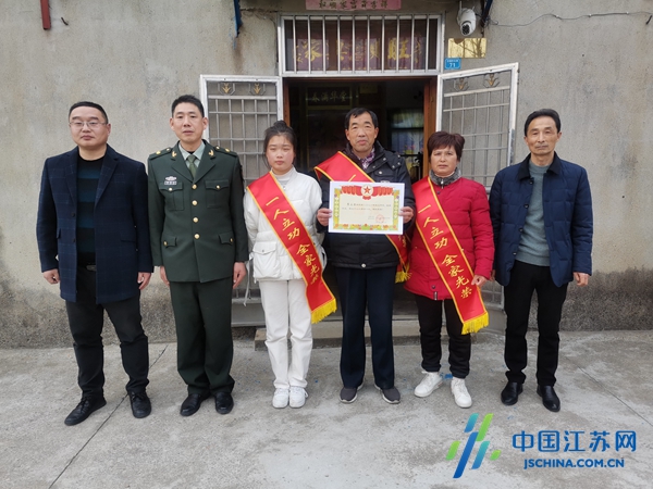 中国江苏网2月10日盐城讯 “三位帅哥了不起,军营建功令人赞。”2月9日,盐城市建湖县上冈镇人武部、退役军人服务站等部门,连续送出三张来自部队的立功喜报,三位现役军人家庭所在的村(居)敲锣打鼓,登门祝贺,给新春佳节增添了更加热烈的气氛。