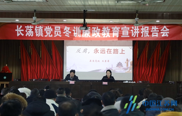 中国江苏网2月12日盐城讯 为深入开展2021-2022年度全镇基层党员冬训工作,深入推进党校理论名师的理论宣讲“双向赋能”工作,认真落实全面从严治党要求,营造廉政勤政的工作氛围,2月12日上午,盐城市射阳县长荡镇召开党员冬训廉政教育宣讲报告会。射阳县委党校讲师王素萍作专题宣讲,长荡镇人大主席于为华主持会议并讲话。