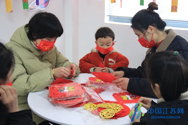 除了猜灯谜之外,还有不少家长陪着孩子一起动手做花灯,志愿者为大家详细讲解制作步骤,孩子们在家长和志愿者的帮助下,在一双双大手小手的默契配合下,不一会儿就制作出一只只鲜红喜庆、别样精致的小灯笼。居民秦女士说:“元宵节是中国的传统节日,以前每年都会给孩子买灯笼。今年自己动手做,不仅增加了我们亲子间的互动,而且感觉更有仪式感!”