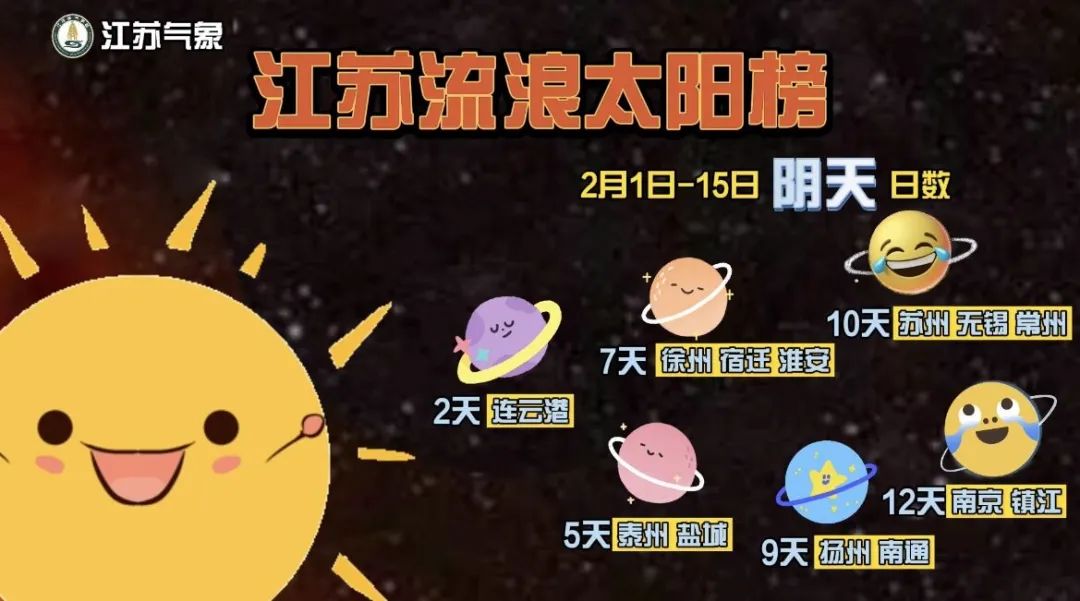 气温:淮北地区-4~4℃,苏南地区0~4℃,江淮之间-2~4℃。