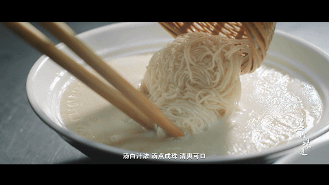 凌晨三点,师傅已经在市场上挑选好了刚从河里捕捞上来的鲫鱼,他要为熬制今天鱼汤面的汤底做准备。将猪油下锅沸至八成,放鱼入锅炸爆,起酥捞起。取猪骨和鳝鱼骨,用油煸透,同炸到酥烂的鲫鱼一起入锅,加水煮沸。两个半小时的熬制,反复翻炒,如此反复,足足三遍,熬出的汤汁才能达到制作鱼汤面的标准。