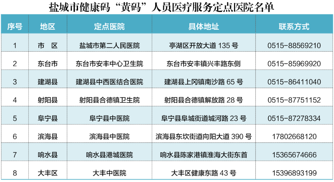 根据新冠肺炎疫情防控工作需要,为做好健康码“黄码”人员的医疗保障服务,现将我市健康码“黄码”人员就诊定点医疗机构名单公布如下: