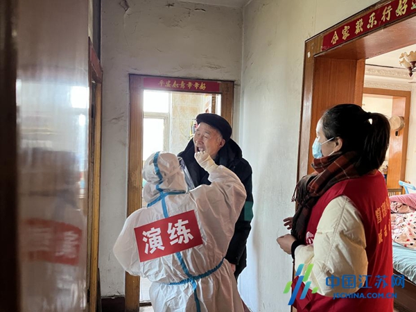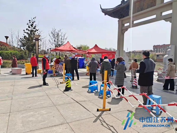 中国江苏网3月29日盐城讯 “请大家戴好口罩,自觉排好队,保持一米间隔,出示行程码和苏康码!”在盐城市滨海县东坎街道团结社区核酸采集现场,社区党总支书记刘德周不断提醒群众有序排队。