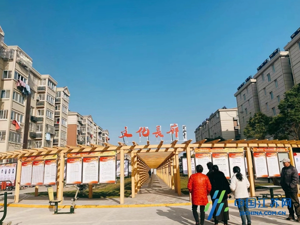 中国江苏网4月2日盐城讯 走进盐城市亭湖区东亭湖街道园中园东小区,富有艺术气息的“文化长廊”四个大字映入眼帘,长廊两侧绿草如茵,漫步在文化长廊中,主题丰富、色彩鲜明的图片在眼前缓缓展现,其中移风易俗的宣传海报吸引了不少群众驻足观看。