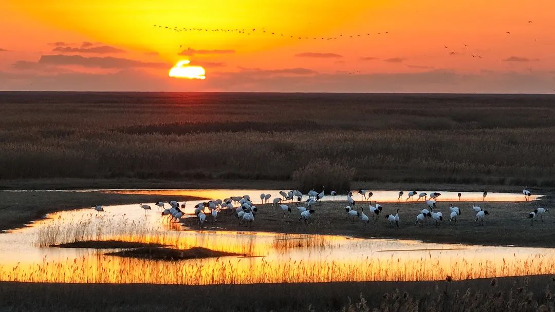 在黄海滩涂,悠然生活着湿地“吉祥三宝”——丹顶鹤、麋鹿和勺嘴鹬。据了解,每年有近千只丹顶鹤选择到盐城越冬,这里丰足的食物、安全隐蔽的栖息环境成了丹顶鹤越冬的终点站。盐城湿地“鹿”丁兴旺,大丰麋鹿国家级自然保护区的麋鹿数量由1986年建区时的39头发展到现在的6119头,占世界麋鹿总数60%。近年来,随着全社会湿地生态保护意识不断增强,在盐城湿地歇脚的勺嘴鹬被越来越多的人所关注和喜爱。