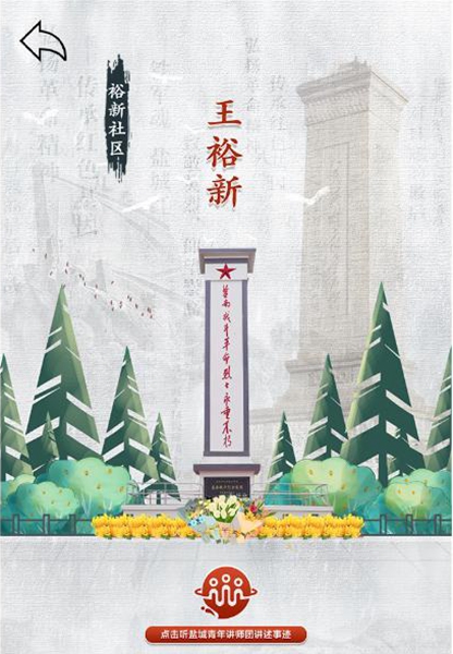 盐南高新区新都街道裕新社区就是为了纪念革命烈士王裕新而命名的社区。“1945年8月13日,王裕新在执行任务时不幸被伪军逮捕。敌人对他施以酷刑,而王裕新坚强不屈,不吐一言。敌人无计可施,于8月l5日将他残忍杀害……”听着串场河小学张家娇同学讲述王裕新烈士的生平事迹,大家深受触动,纷纷在云祭扫平台留言祭奠。“青山绿水,长流英雄浩气”“缅怀英雄功绩,发扬先烈遗志”“松柏傲苍穹,鲜花祭英魂”……每一句感言都寄托了大家对先烈的哀思与敬仰。