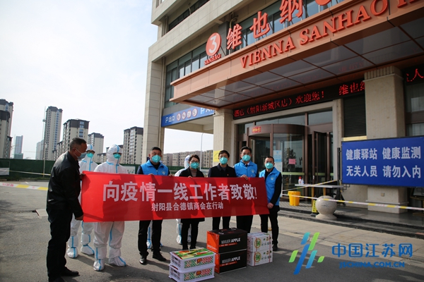 近日,市政协委员、市商会副会长、射阳县合德镇商会会长、江苏长江药业有限公司董事长陶明军带领商会会员代表先后来到合德镇维也纳健康驿站、锦江之星健康驿站和陈洋高速卡口点,看望慰问在一线参加疫情防控的工作组成员,捐赠N95口罩2000只,为每位疫情防控一线人员送上慰问金和水果、牛奶、面包、方便面等爱心物资,感谢他们不辞劳苦,始终坚守在疫情防控“最前沿”,守护了全镇人民的健康和安全。