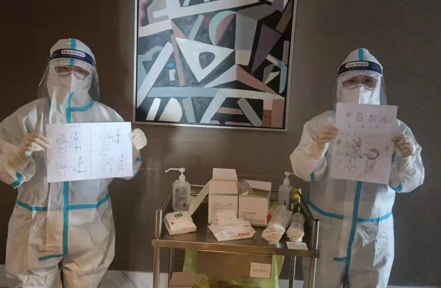 在建湖县隔离点,汤华、李莎莎和符婷婷3人穿好防护服后开始了一天的核酸采集工作,扫描试管码、贴标签、准备采样物品,来到隔离房间前,先七步洗手、擦拭门把手、敲门、再次七步洗手,等待隔离人员开门,进行鼻咽双采,耐心解答隔离人员提出的问题,大家不厌其烦,一遍遍的重复着,整个隔离点一轮采样结束后,防护服里早已汗流浃背,而当听到隔离人员一声声的“谢谢,谢谢,你们辛苦了!”,再多的苦与累都化成了那一句“为守护健康,一切都值得!”