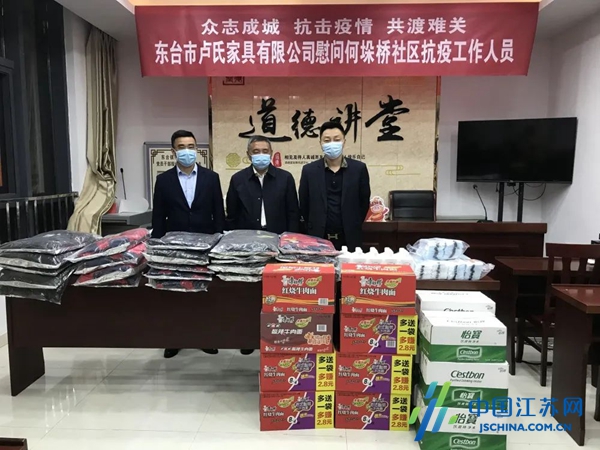 4月12日,带着对社区抗“疫”工作人员的深深牵挂,东台市卢氏家具有限公司前往何垛桥社区,为“疫”线社区工作者、网格员、志愿者等送上冲锋衣、方便面、矿泉水、免洗消毒液,口罩等物资,感谢他们在疫情防控中的辛苦付出,并叮嘱抗疫人员一定要加强自身防护,注意休息。