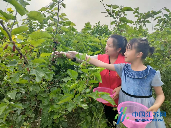 朗朗读书声,小朋友银铃般的笑声,为桑葚园里的采摘之行增添了不一样的精彩。