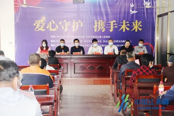 本次活动由东台市民政局、东台市司法局和南沈灶镇人民政府联合主办;南沈灶镇党群工作局、东台市义工联合会、东台市阳光志愿法治服务中心协办;南沈灶镇司法所、南沈灶社会工作服务站、南沈灶镇天鹅村委会承办。
