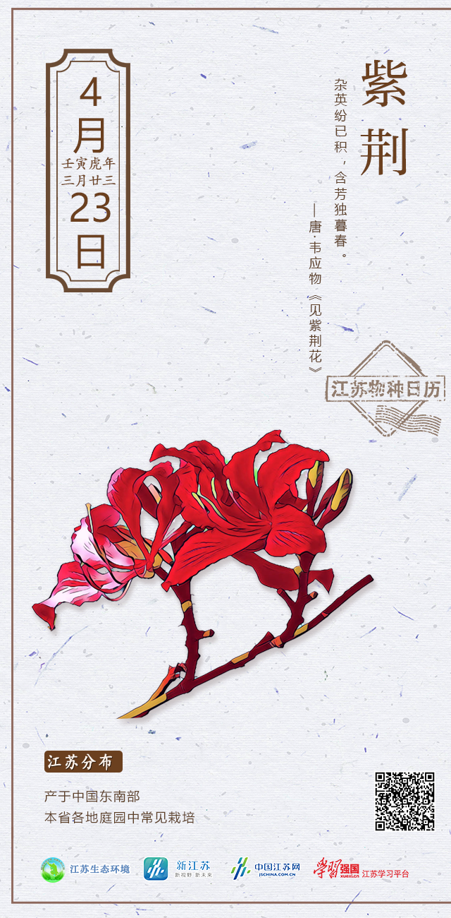 各种杂花纷纷落下堆积在一起,只有紫荆花含苞待放,独自等待春天的末期。紫荆就像我故乡家园的树一样,不由让我回忆起故乡的人。