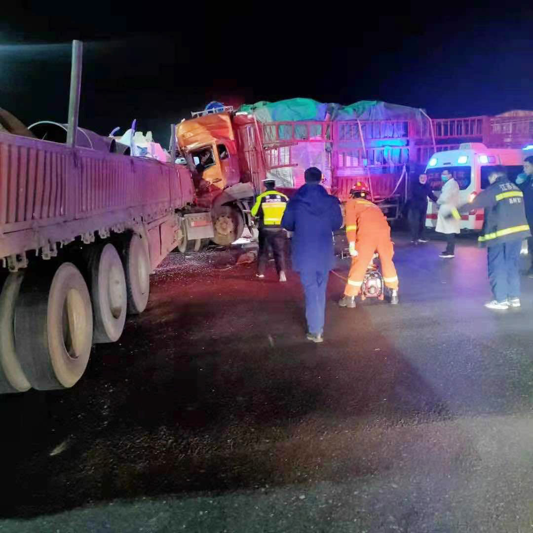 民警到现场看到,发生事故的车辆均为红色重型半挂车,其中一辆半挂车的车头已深深地“怼”进了另一辆车的货箱,整个车头面目全非。司机被卡在严重受损的驾驶室内,动弹不得,好在意识还比较清醒。“要是再往前一点,我的命就没有了!”他称,事发时,自己驾驶车辆直行,不知怎的与一辆由东向南左拐弯的货车撞上了。在重力的作用下,货车的车头被削了一半,自己腿也被卡在驾驶室内,剧痛难忍。