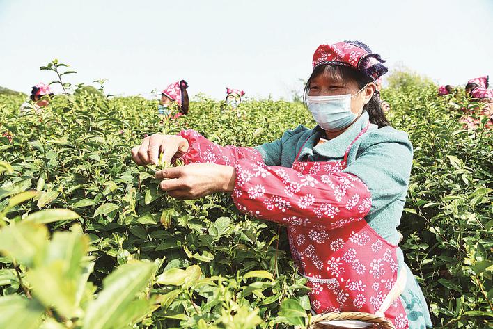 3月29日,茶农在采摘明前茶鲜叶。清明节临近,南山...