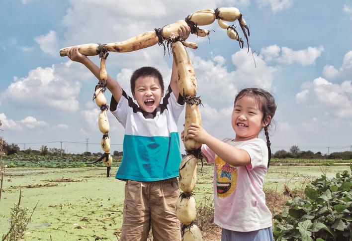 金秋时节,在镇江丹徒区谷阳镇东湖村的千亩水田里,农民在忙着收获莲藕、菱角、茭白等水生农产品以及套养的甲鱼等水产品,人人都洋溢着丰收的喜悦。