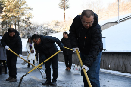 30日一大早,经开集团党员们就自发组织起来,拿着铁锹清理园区道路积冰。凌冽的寒风也无法阻挡广大党员们扫雪除冰的热情,大家三三两两一伙,挥锹铲冰。一时间,铁锹与地面撞击声不绝于耳。