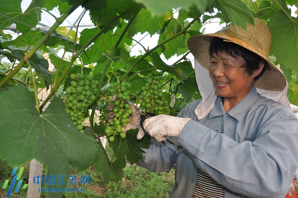 2018年5月15日,技术人员正在灌南县田楼镇融盛葡萄园里为葡萄进行疏果作业。近年来,灌南县加大农业产业结构调优力度,把葡萄产业作为促农增收的主导产业来抓,目前,已形成现代农业园区葡萄高标准试验示范园等“一园四带”葡萄生产基地10余个,总种植面积2万余亩,葡萄总产量超3万吨。 王华 王林 摄 视觉江苏网供图 http://v.vijs.net/cover.jsp?cid=305600