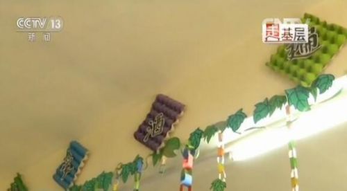 记者:我觉得你是废物利用女王,你们现在那个教室上面,洒满什么爱的那个图案。