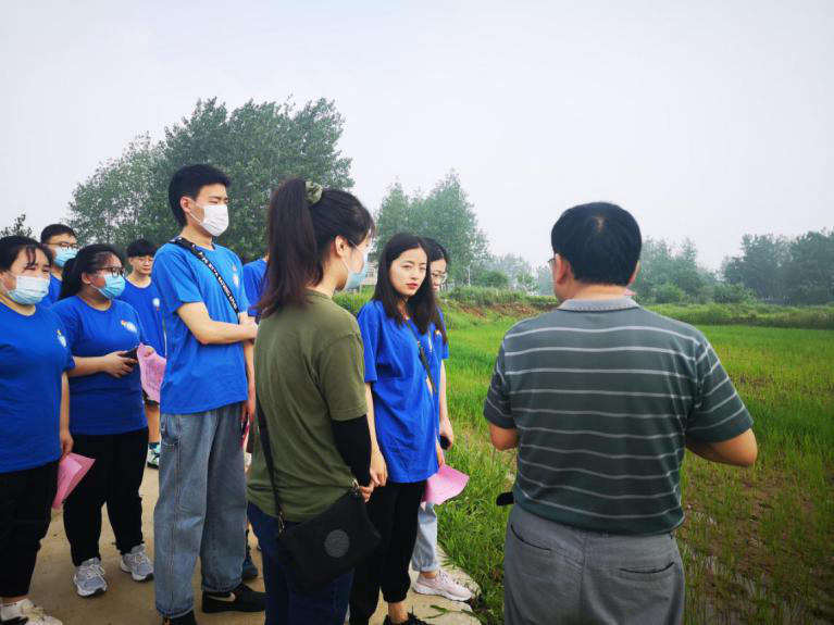 师生们走进六合区,在竹镇镇乌石社区江淮分水岭无农药籼稻基地,了解到六合区境内沿江淮分水岭一线存在一条奇特生物带,大约10万亩,许多地块病虫害极少,很多农作物尤其是籼稻可以基本上不施用农药也能生长。