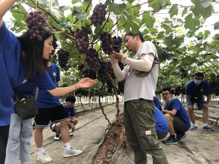 在金牛湖葡萄庄园专业合作社,学生们现场考察金牛湖葡萄种植的生长和采摘状况,南太湖特早、辽峰、夏黑、醉金香、巨玫瑰……各种各样的葡萄品种让学子们大开眼界。
