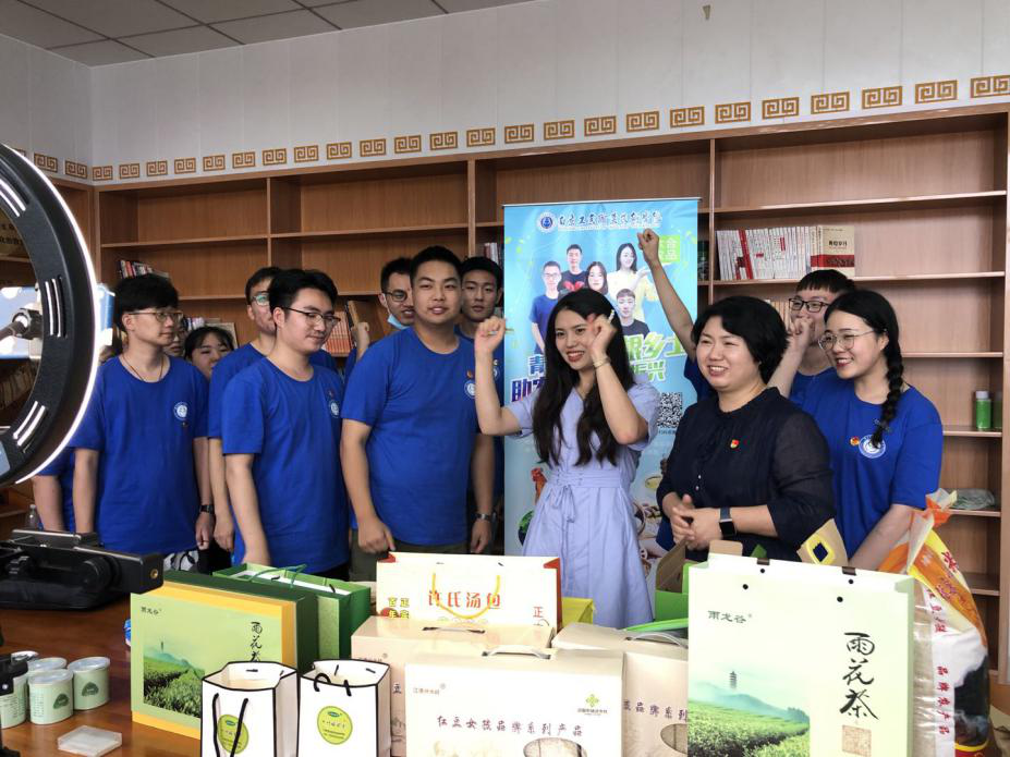 为帮扶六合区当地经济薄弱村农户销售推广特色农产品,当天下午,学子们化身直播卖货主播,以“学生+农户”在线直播带货的形式,为六合农品代言,倾心推荐江淮风水岭稻米、冶山贡鸡、金牛湖葡萄、东沟盐水鹅等六合特色农产品通过云端“飞”往全国各地。
