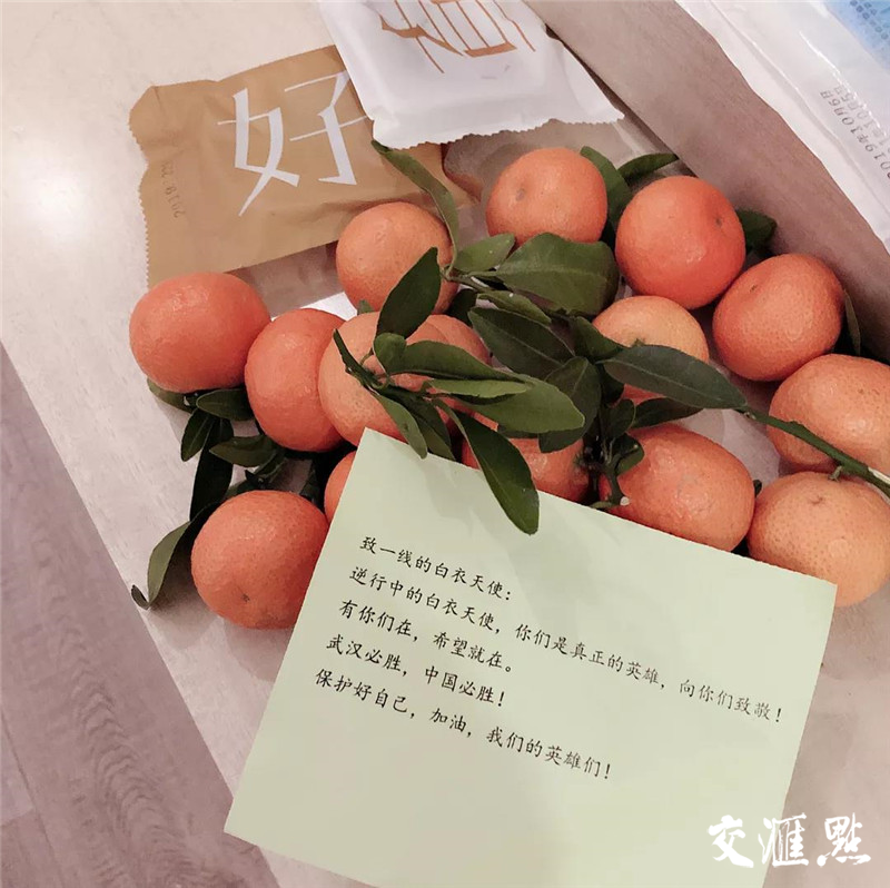 一位武汉市民听说我们是从南京来的,特别感谢我们,送来了水果并赠言: