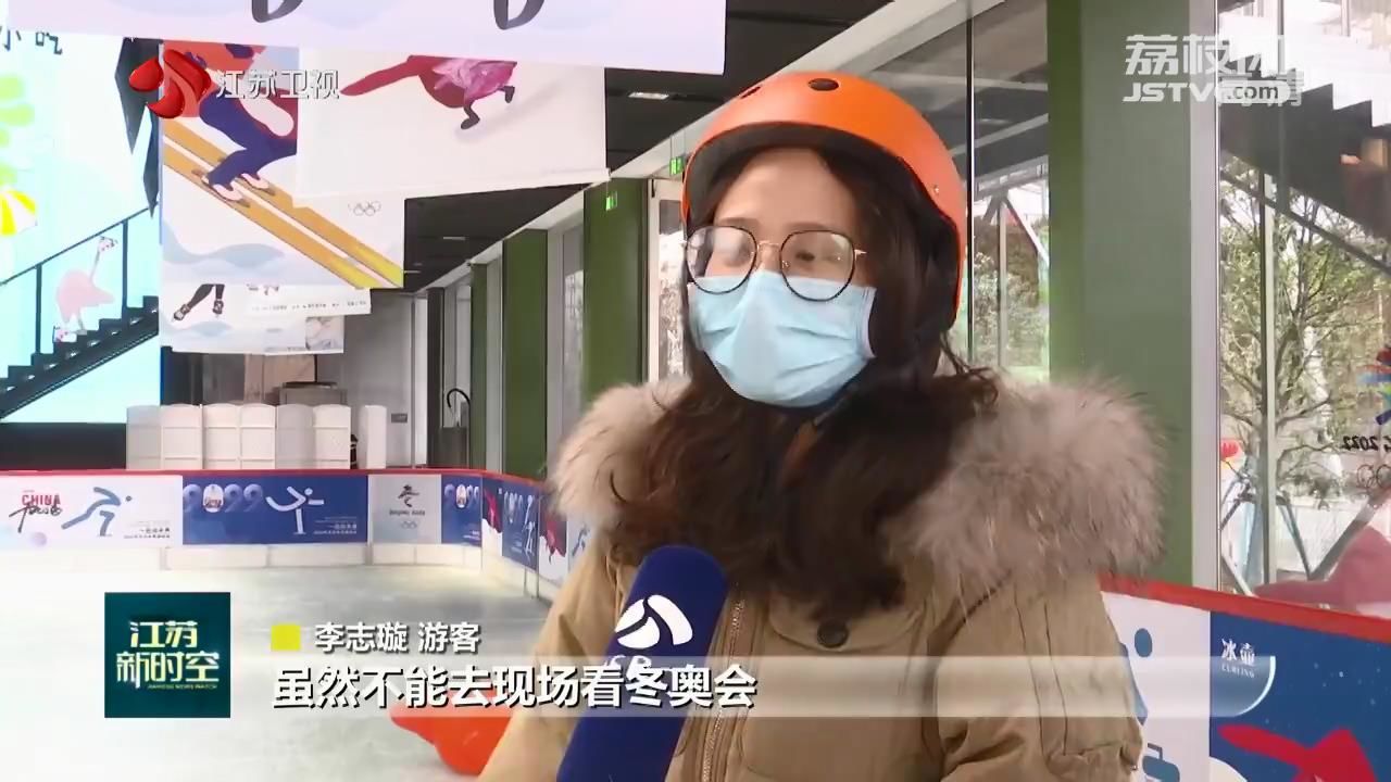 游客李志璇说:“虽然不能去现场看冬奥会,但是我们在家门口也可以去感受一下冬奥会的项目,包括这种氛围感。”
