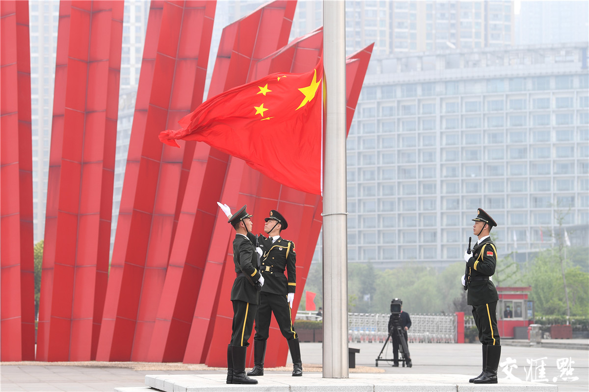 交汇点讯 4月23日是南京解放纪念日。今天,南京市在渡江胜利纪念馆举办升国旗仪式,庆祝渡江战役胜利暨南京解放73周年。