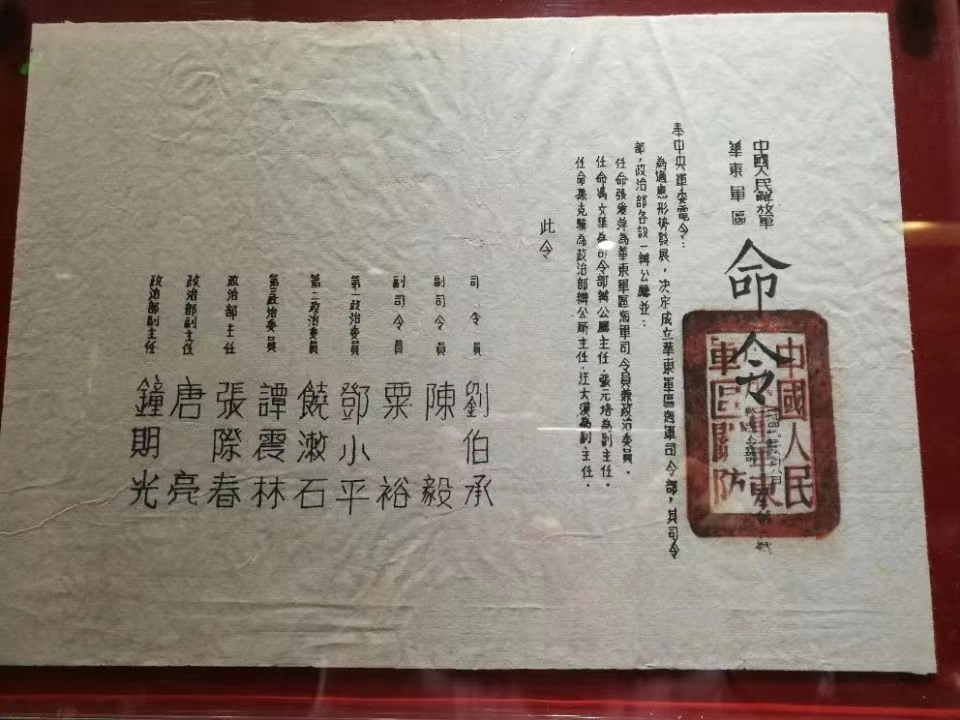 在纪念馆展柜中有一份文件,这是1989年2月17日,党中央关于海军成立日期的批复:同意以1949年4月23日华东军区海军成立日期为人民解放军海军成立日期。自此,泰州白马庙也被明确为人民海军的诞生地。