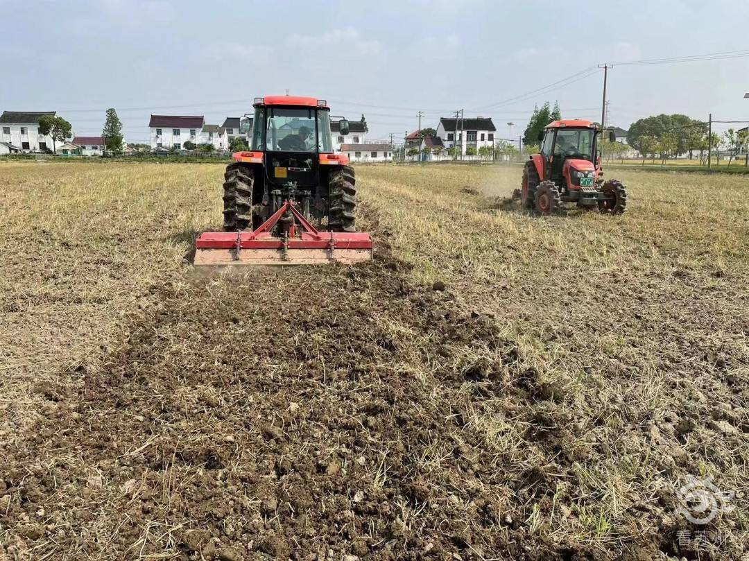 轰隆作业的拖拉机,在田间来回奔忙……太仓农忙时节比上海晚10天左右,正好有余力前来帮忙。新农村出动了10名合作社社员、两台拖拉机、4台旋耕机,对120亩土地进行翻耕,把种植的蚕豆绿肥全部还田。
