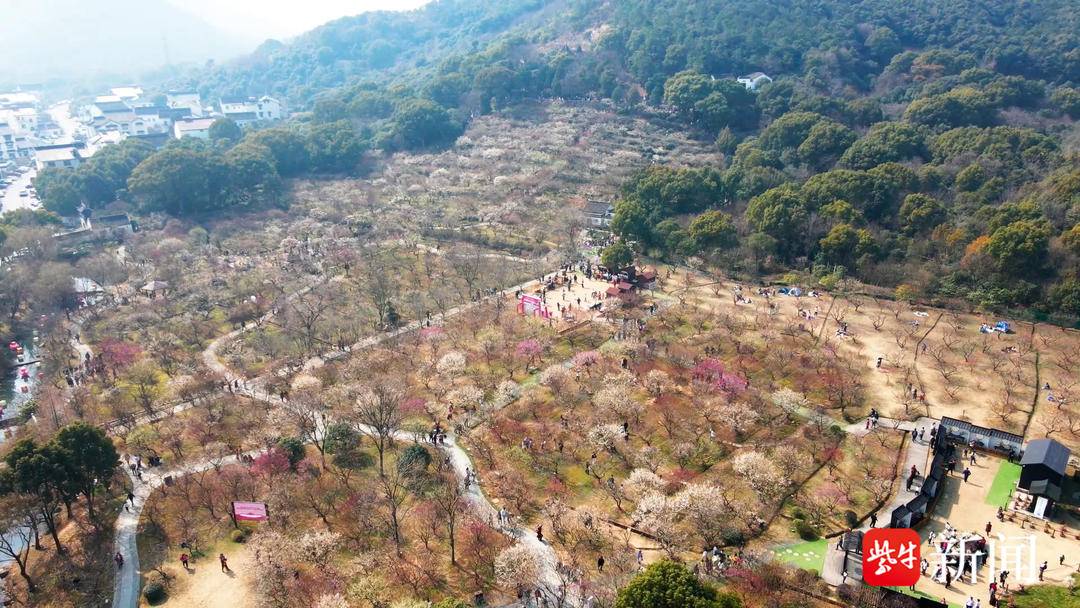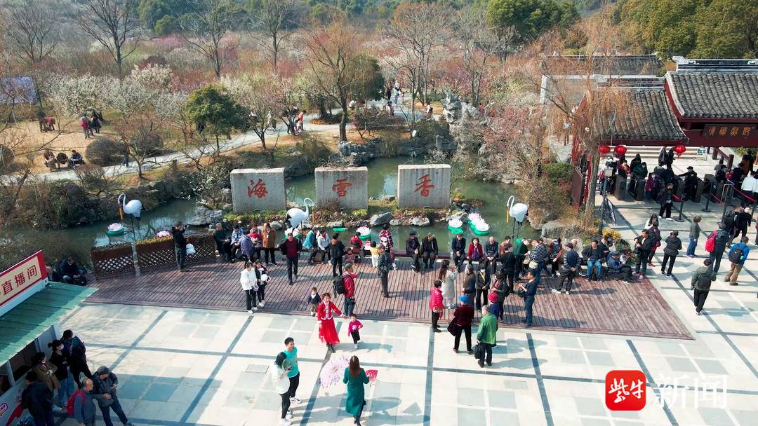 香雪海是江南著名的赏梅胜地。目前,香雪海漫山的梅花已渐次盛开,白梅、红梅、墨梅、玉蝶、绿萼梅……各色梅花争奇斗艳、香飘十里。现场繁花似海,美不胜收,正值阳光明媚的周末,香雪海景区吸引了数千游客争相打卡,一探“梅”好春景的魅力。