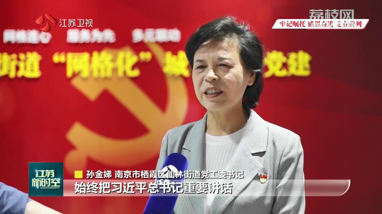 南京市栖霞区仙林街道党工委书记孙金娣说:“始终把习近平总书记重要讲话作为指路明灯。面对基层治理的挑战和难题,我们强化党建引领、织密组织体系、整合区域聚资源,确保小事不出网格,大事不出社区,难事不出街道,矛盾不上交。”