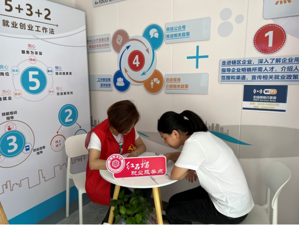 业以致和,强化实践帮扶,保障安心之所。为给辖区各族群众异地就业创业、融入当地提供有利条件,社区结合实际,依托原“智慧小屋”,打造家门口的公共就业服务站,设立“红石榴就业服务窗口”,配备“红石榴”就业指导员队伍,做到服务居民“零距离”,为各族群众提供全方位、多层次的就创业交流平台。服务站整合社会资源,搭建就业创业的桥梁,实现信息的双向流通,让辖区周围更多少数民族群众顺利就业和创业。同时,社区统筹资源,开设“红石榴学堂”,提供内容丰富、形式特色的技能培训,帮助少数民族群众学习专业技能,进一步提升他们就业创业的能力。