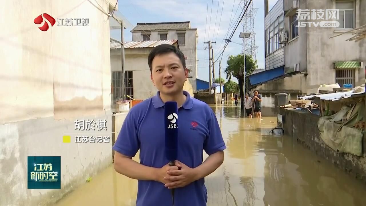 江苏台记者胡於棋:“我现在所在位于南京市江宁区汤山街道的张府仓村,今天早间村里的淹水最深超过了一米,目前水位在逐渐消退当中,但是可以看到村里的低洼地带积水仍然是超过了膝盖的位置。目前我们南京消防和社区工作人员,还在对受淹住户进行最后的排查,确保每一位群众的安全。”