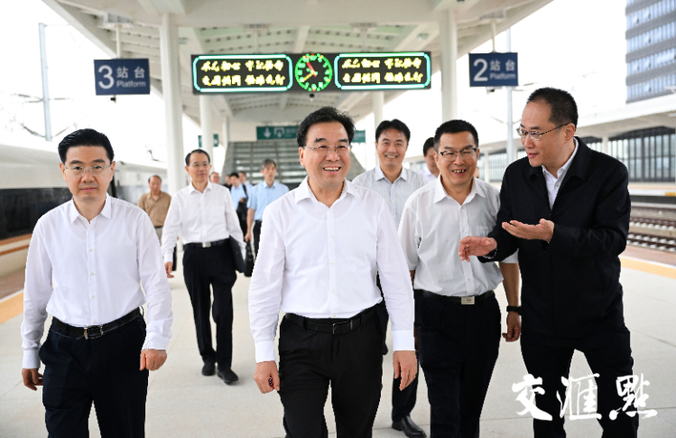 交汇点讯 “轨道上的江苏”再添大动脉,区域协调发展注入新活力。在沪宁沿江高铁试运行阶段,8月30日上午,省委书记信长星调研项目建设和运营准备工作。他强调,要深入学习贯彻习近平总书记重要讲话精神,坚持安全第一、质量为本,着力打造精品工程、绿色工程、人文工程,更好服务长三角一体化发展和长江经济带发展等重大战略,为江苏在推进中国式现代化中走在前、做示范提供强有力支撑。