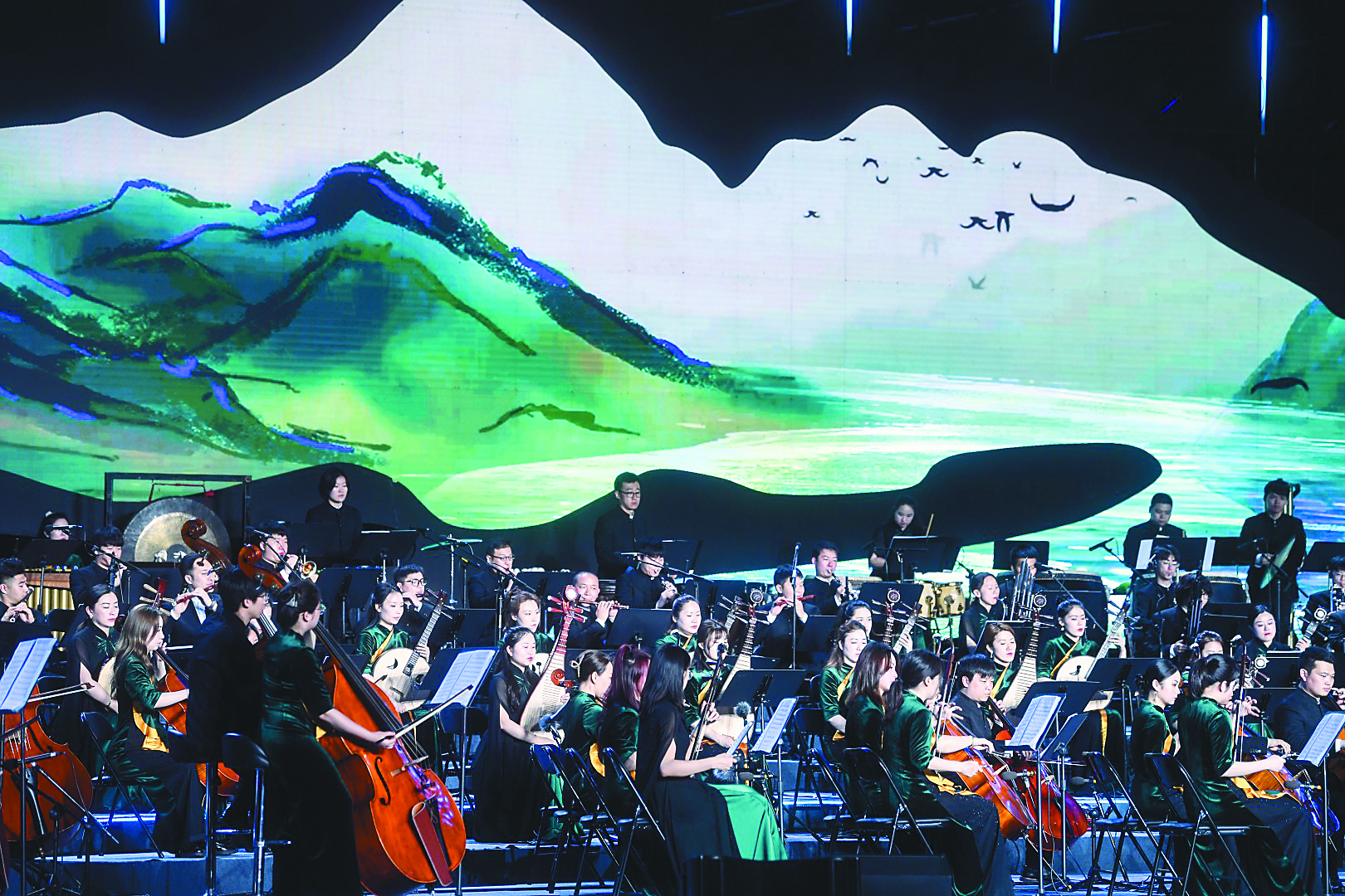 在大江大河中邂逅“水韵江苏”之美。5月27日晚,南京国际青年文化公园滨江舞台,南京民族乐团和江苏省民族乐团联袂呈现大型民族管弦乐《大江南》。在悠扬的民乐声中,观众吹着江风,和着长江之畔的涛声,沉醉于江南千年的时光流韵。民乐爱好者雅理动情地说,听着《大江南》,心底蓦然涌上白居易的千古名句“千里莺啼绿映红,水村山郭酒旗风”。