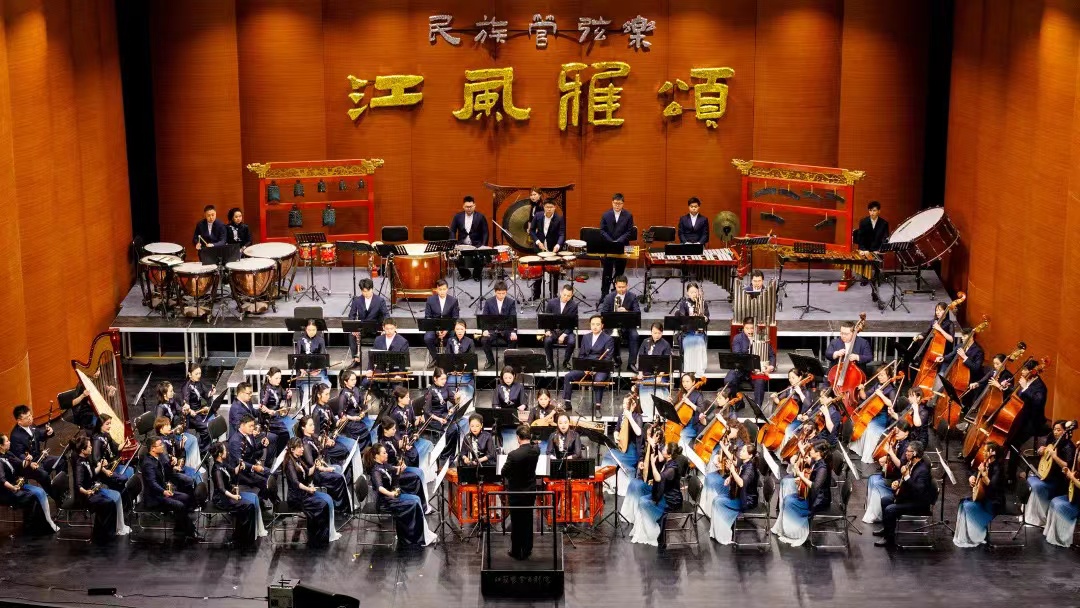 “这些优秀的民乐新作,在展现江苏地域特色的同时,亦从精神层面表达江南文化,展现流淌在民族血脉里的深厚文化基因和每个人心中对美好精神世界的追求。”王丹红说。她在《大江南》的最后一个乐章“最忆江南”里,回到白居易《忆江南》的诗韵,以600年昆腔搭配江南丝竹之声,勾勒出美好的江南之梦的意境。而《江风雅颂》的指挥、中央音乐学院指挥系教授王甫建也说,“江风雅颂”,由四个各具文化深义的汉字复合而成标题,歌颂生生不息的长江和根脉深邃的华夏文明根脉。“江风,即江南风度、江苏风格,雅颂则是以高雅的艺术形式歌颂,充分体现出江苏的人文情怀和文化底蕴。”