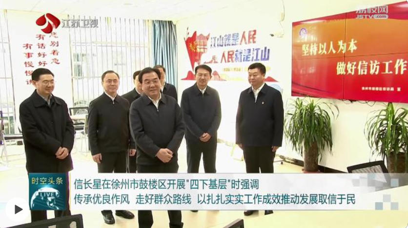 12月9日,省委书记信长星到徐州市鼓楼区开展“四下基层”。他强调,要深入学习贯彻习近平总书记重要讲话精神,传承弘扬“四下基层”优良作风,走好群众路线、厚植为民情怀,切实把主题教育抓出高质量好效果,以扎扎实实的工作成效推动发展、取信于民。