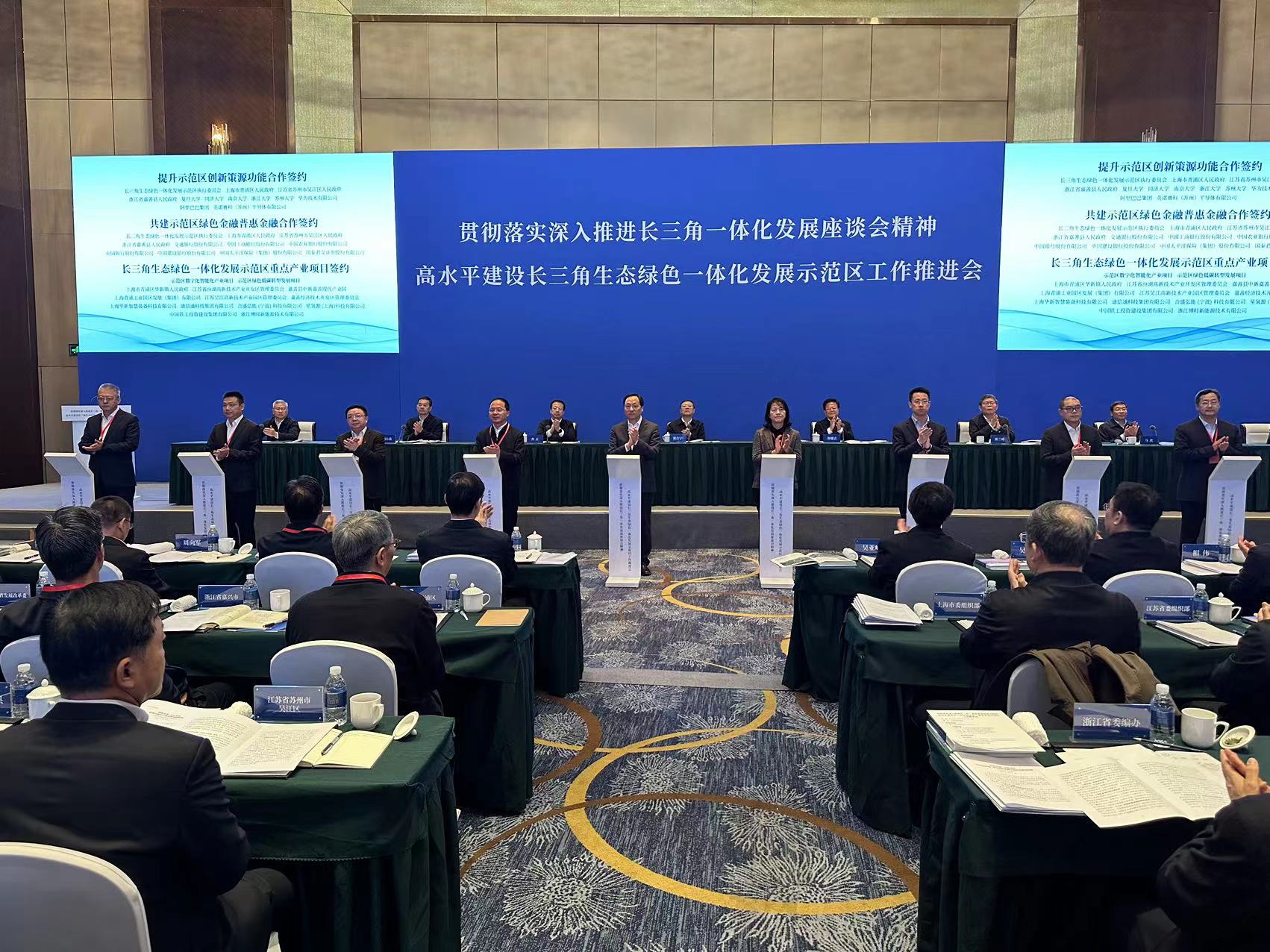 示范区建设下一步的重点有哪些?在推进会现场,纷纷“上新”各类重点项目给出了答案。会上,示范区围绕创新策源、绿色金融普惠金融、产业数字化智能化、绿色化低碳化,举行了重点项目签约仪式,共签约了8个重点项目,其中包括2项重大合作项目和6个重点产业项目。