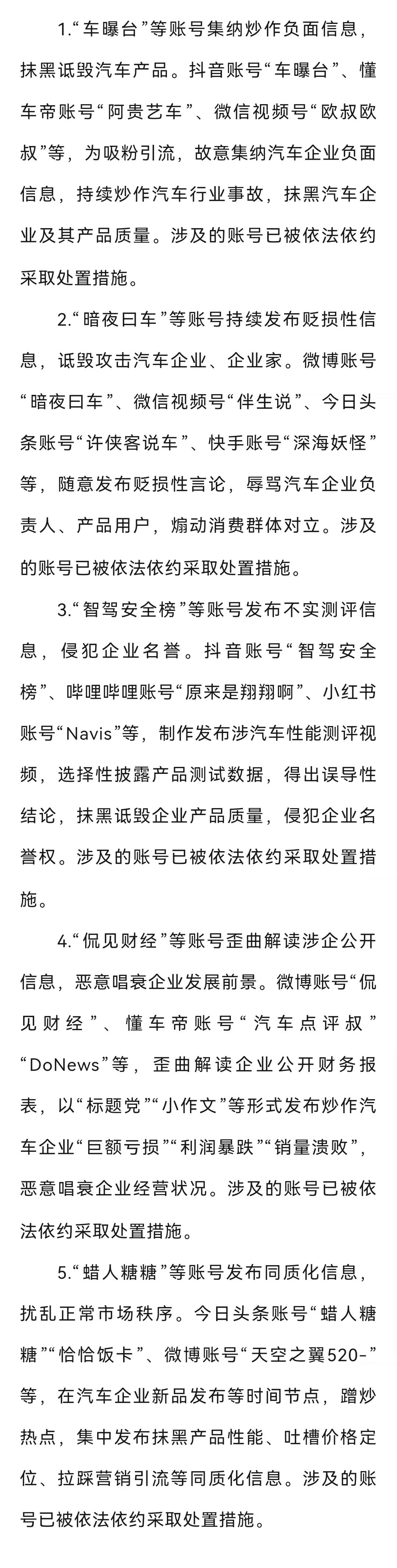 2.汽车行业网络乱象专项整治行动公开曝光第二批典型案例:近期,国家网信办会同工业和信息化部等部门持续开展汽车行业网络乱象专项整治行动,从严整治恶意诋毁攻击、散布不实信息、开展虚假测评等违法违规行为。部分典型案例通报如下↓(网信中国)