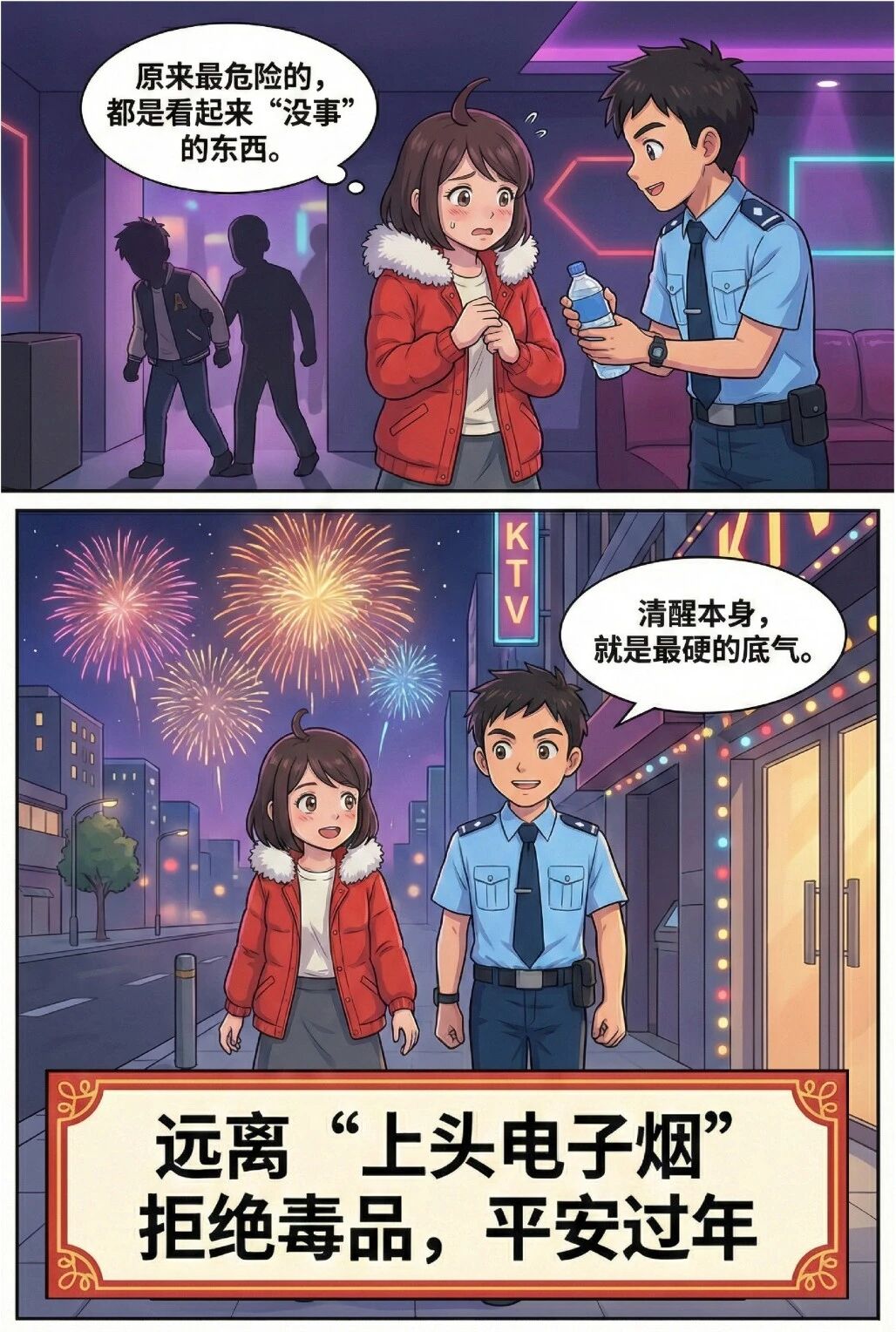 新春聚会,年轻人喜欢去酒吧或KTV推杯换盏,气氛可以嗨,防线不能松!新型毒品可能正悄悄披上“奶茶”“跳跳糖”甚至“电子烟”的伪装,潜伏在你的酒杯旁。今天,带你练就一双火眼金睛,拒绝“毒”行,只留欢庆!(中国禁毒)