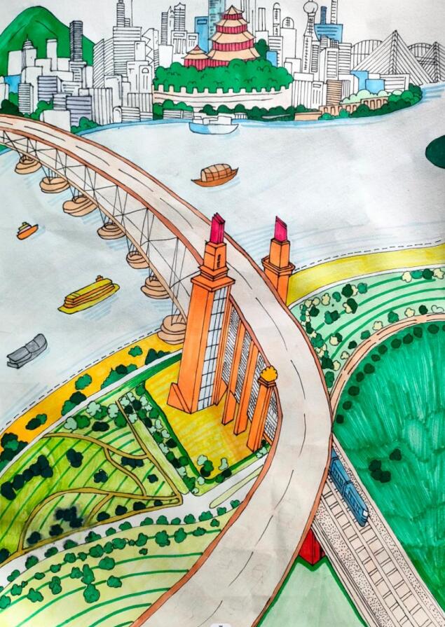 《长江大桥儿童画》