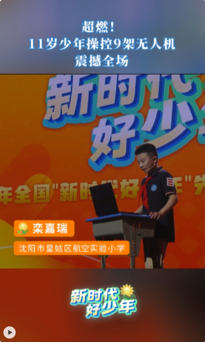 8月15日晚,筑梦中国少年行2024年全国“新时代好少年”先进事迹发布仪式在江苏南通举行。来自辽宁沈阳的11岁少年栾嘉瑞,曾在无人机竞赛中取得优异成绩,他的梦想是当飞行员,开战斗机,保卫祖国海空。