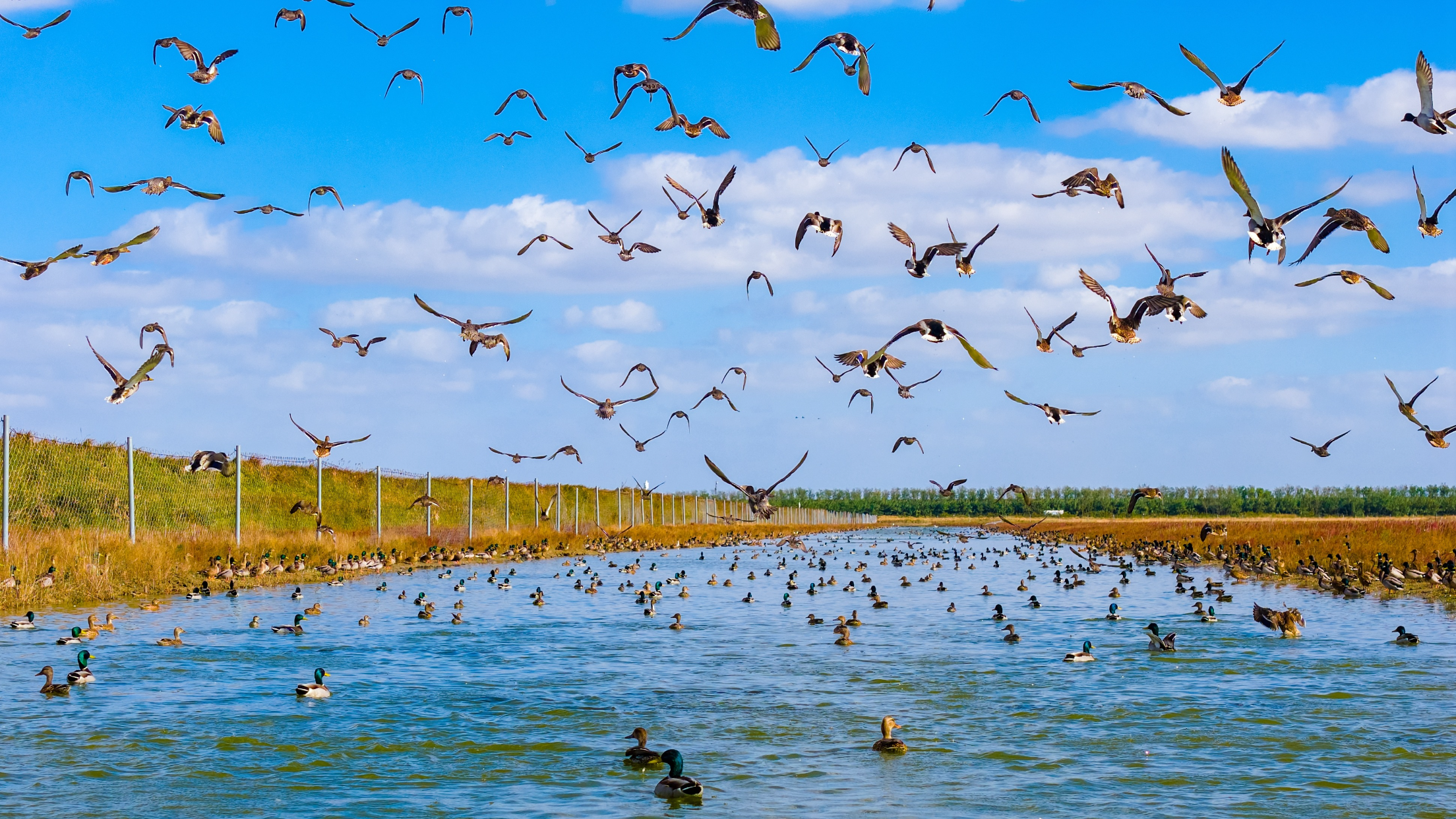 连续七年!数万只花脸鸭抵达洪泽湖湿地越冬