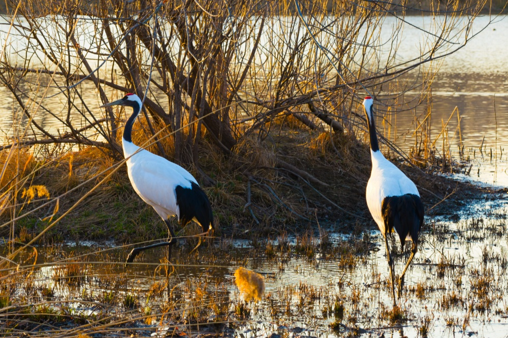 时隔两年再“归巢”!两只丹顶鹤现身南京新济洲新生岛