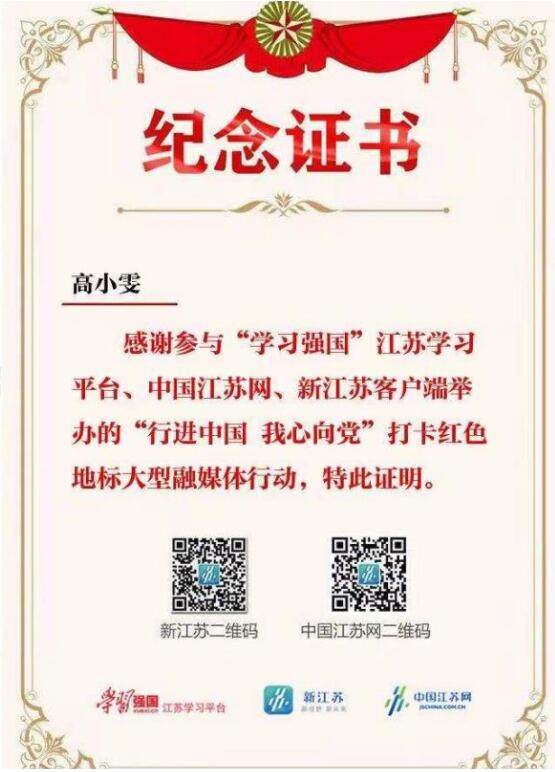 高雯的红色地标打卡证书