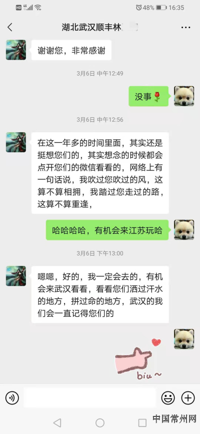 “在这一年多的时间里面,其实还是挺想您们的,想念的时候都会点开您们的微信看看。网络上有—句话说,我吹过您吹过的风,这算不算相拥,我踏过您走过的路,这算不算重逢。”援鄂医疗队员、常州一院神经外科副护士长冯赟看到信息后,眼角露出了微笑。
